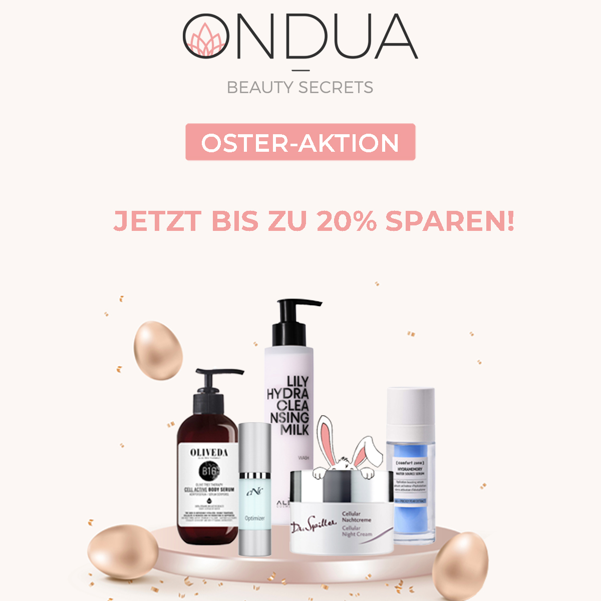 Die perfekte Zeit, um sich selbst oder anderen kleine Beauty-Momente zu schenken – bei ONDUA warten exklusive Oster-Deals mit bis zu 20% Rabatt auf viele Top-Marken auf dich.